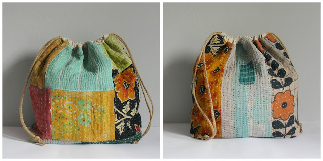I just recently finished this order for a customer. Large drawstring bags to hold diapers, a piant brush holder and pencil roll with zipper pouch at one end. I love the way they turned out and such a great idea. Lulu has altready put her order in for a pencil roll ( oh and a kantha duffle bag)!