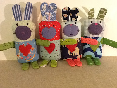 I used vintage fabrics on all of them, I just love the soft faded colours. I also put some beautiful French lavender in them. Lulu's favourite is the blue and purple one, I think mine is the pale pink with linen arms and ears. Hope the teachers like them!
